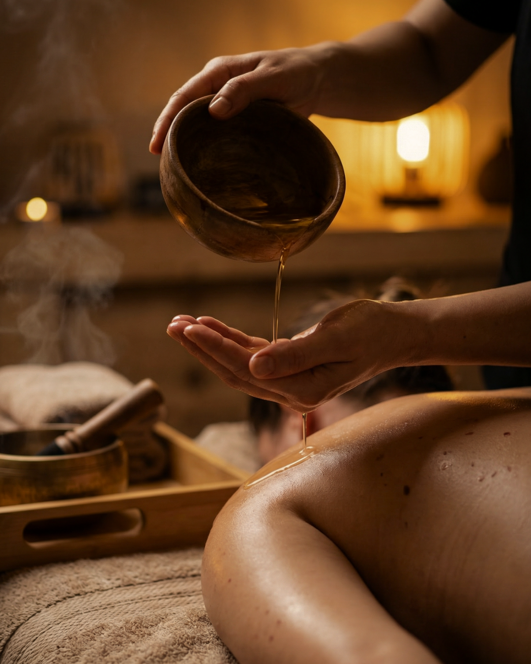 El masaje se acompaña de aceites que alivian el estrés y de técnicas suaves y profundas a la vez, que liberan el cuerpo de tensiones. Durante la experiencia, el sonido vibrante del cuenco tibetano se convierte en un lenguaje sutil que penetra más allá de la piel, armonizando la mente y expandiendo serenidad en cada célula.