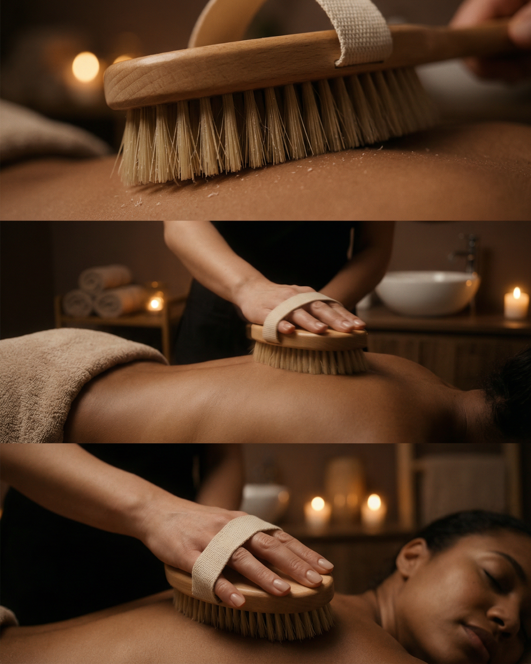 El cepillado en seco tiene sus raíces en la tradición ayurvédica de la India, donde se utilizaba como ritual diario para exfoliar la piel, estimular la circulación y activar la linfa, promoviendo bienestar, suavidad y renovación desde lo más profundo.